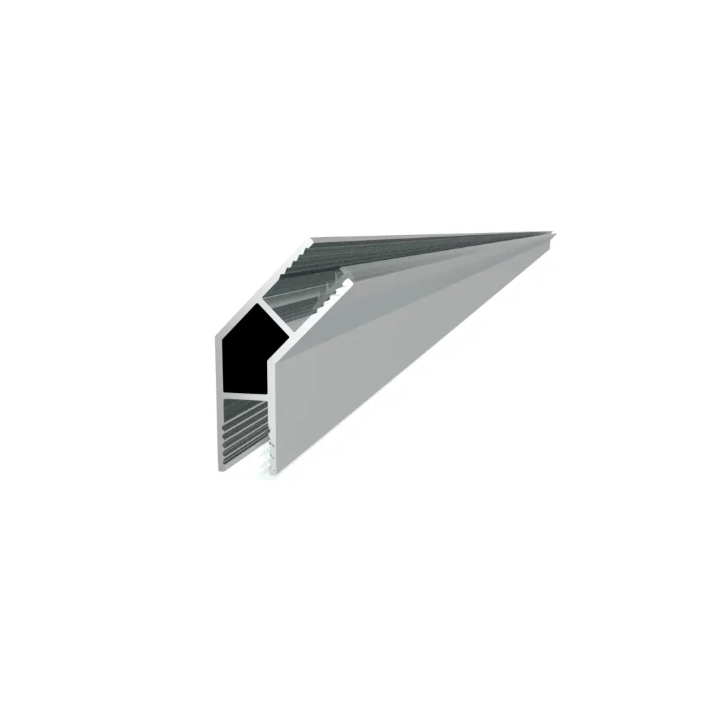 Hjørneprofil som kobler sammen to faste glassfelt i 135° vinkel.