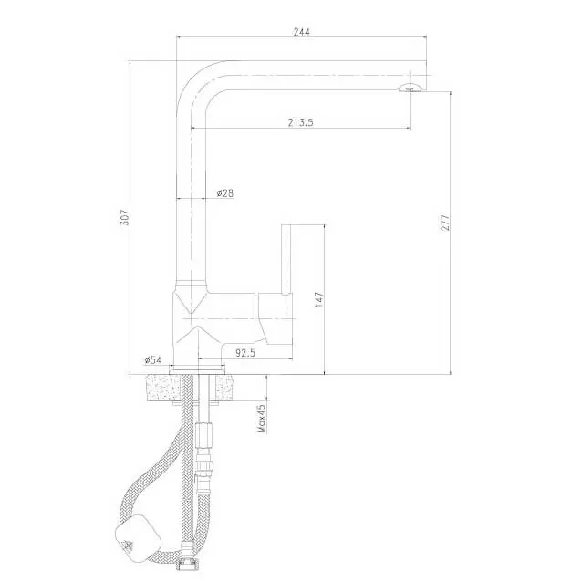 Miri kjøkkenbatteri m/uttrekk, krom med uttrekkbar tut
