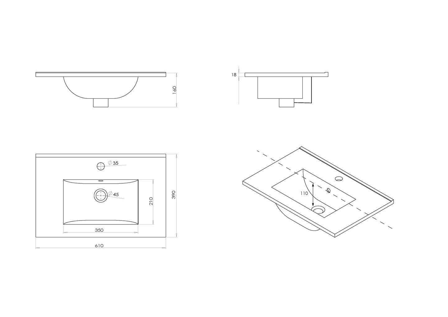VikingBad Ada 61 Slim Servant, hvit porselen