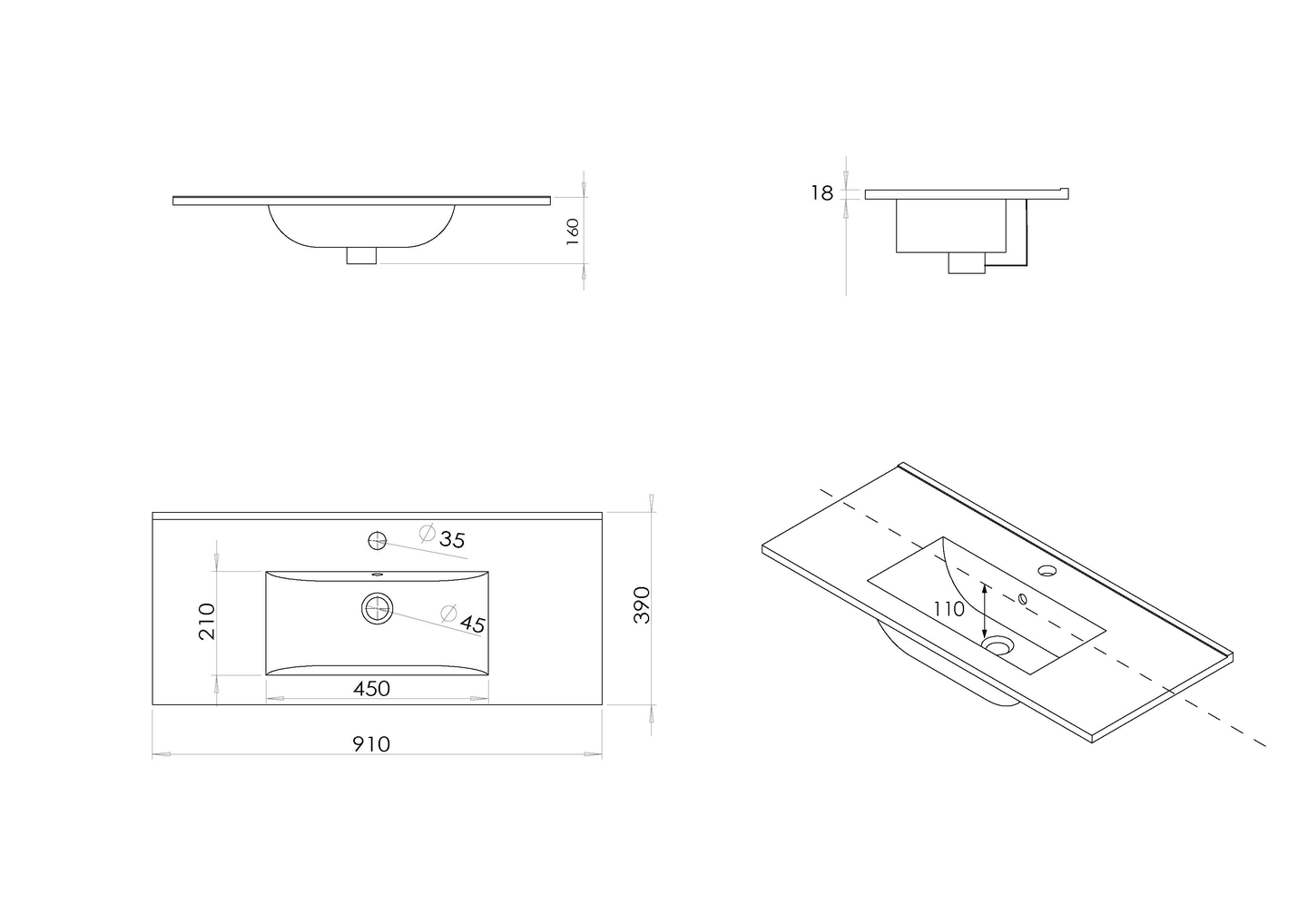 VikingBad Ada 91 Slim Servant, hvit porselen